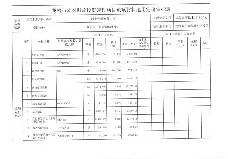 龍巖市本級(jí)財(cái)政投資建設(shè)項(xiàng)目缺項(xiàng)材料選用定價(jià)審批表
