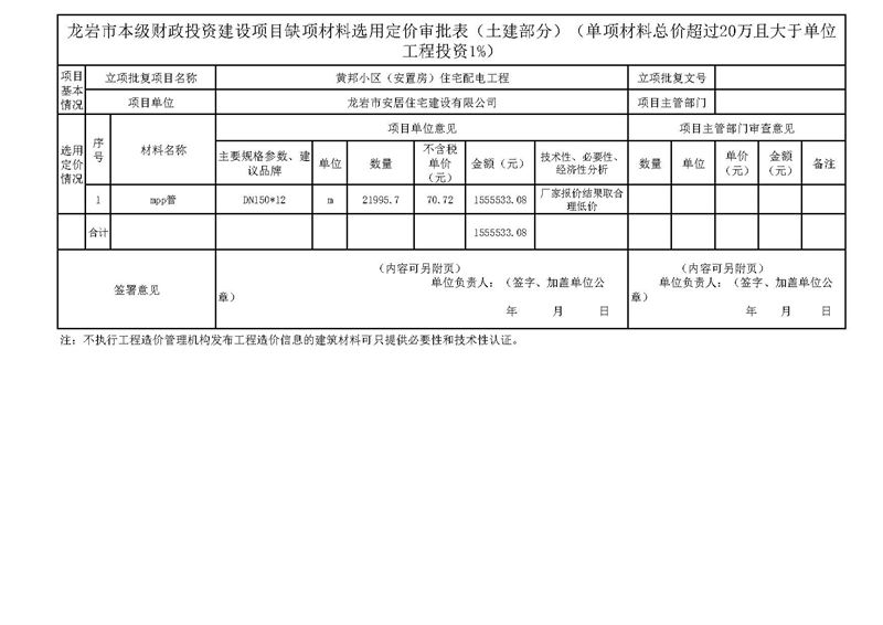 黃邦小區(qū)(安置房)住宅配電工程(土建)(單項(xiàng)材料總價(jià)超過20萬且大于單位工程投資1%)