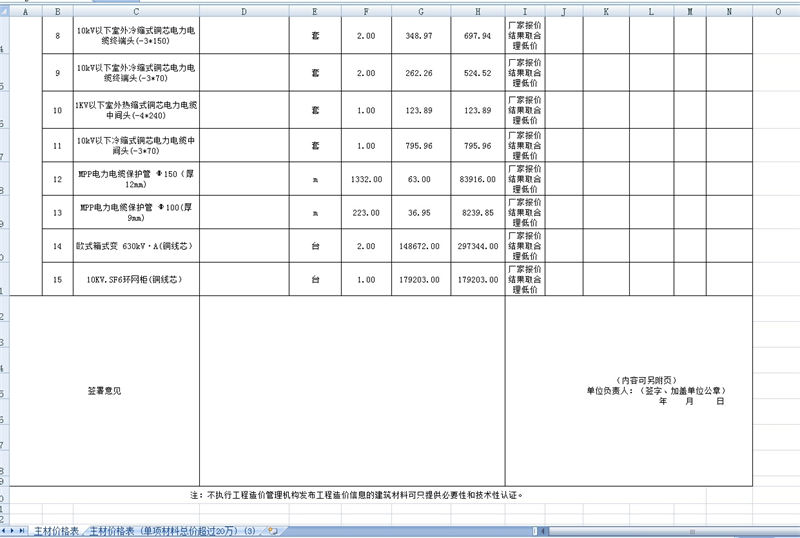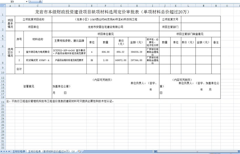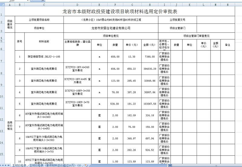 龍泉安置小區(qū)10KV改線缺項材料