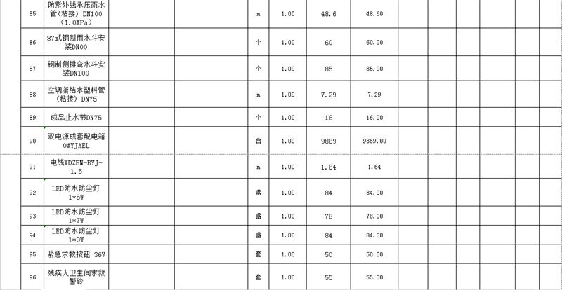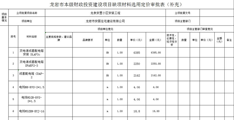 龍泉安置小區(qū)安裝工程缺項(xiàng)材料補(bǔ)充