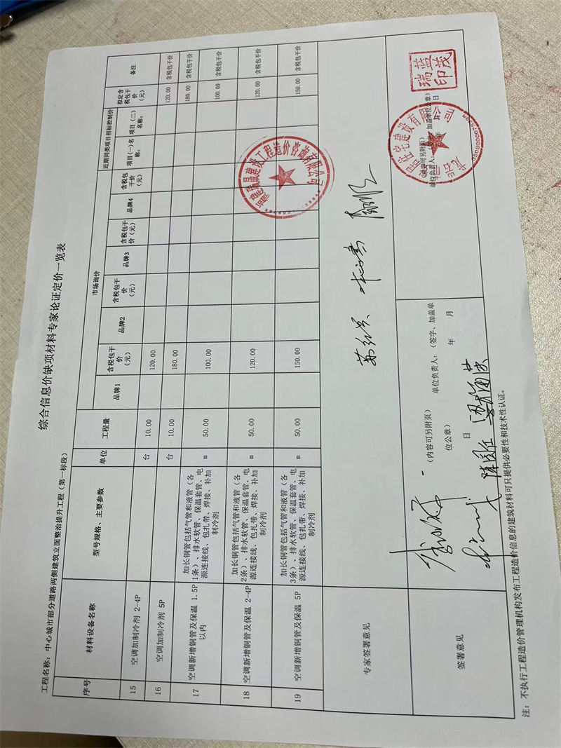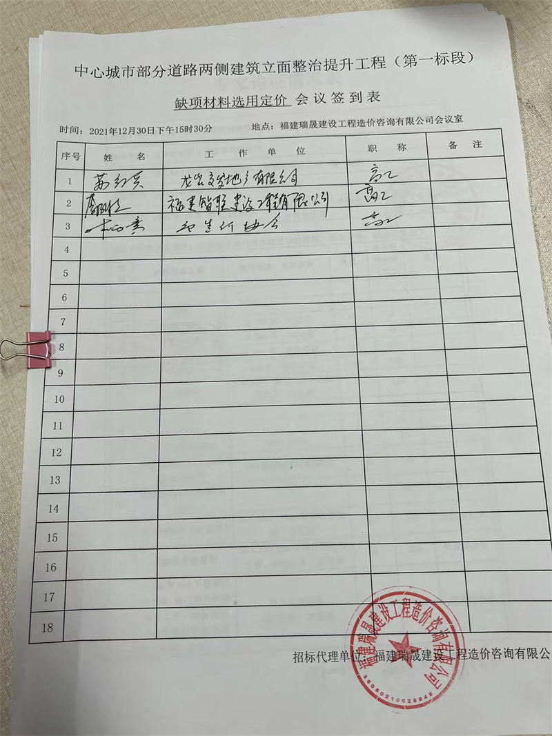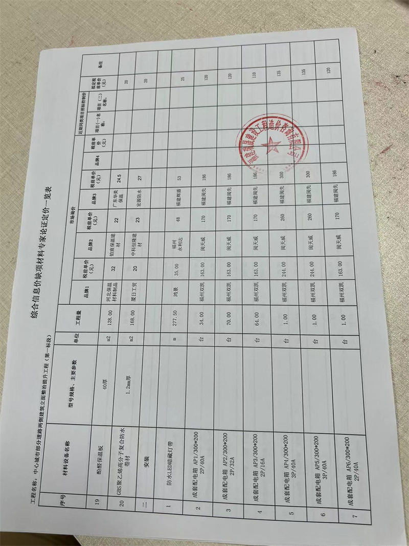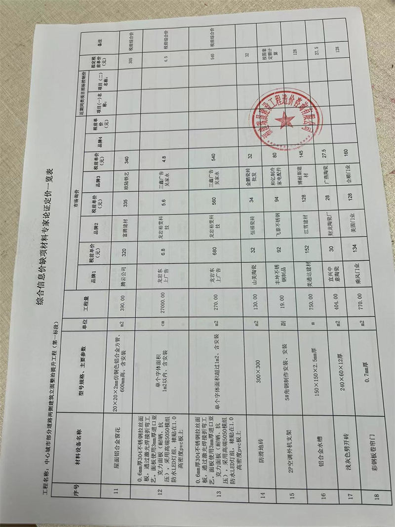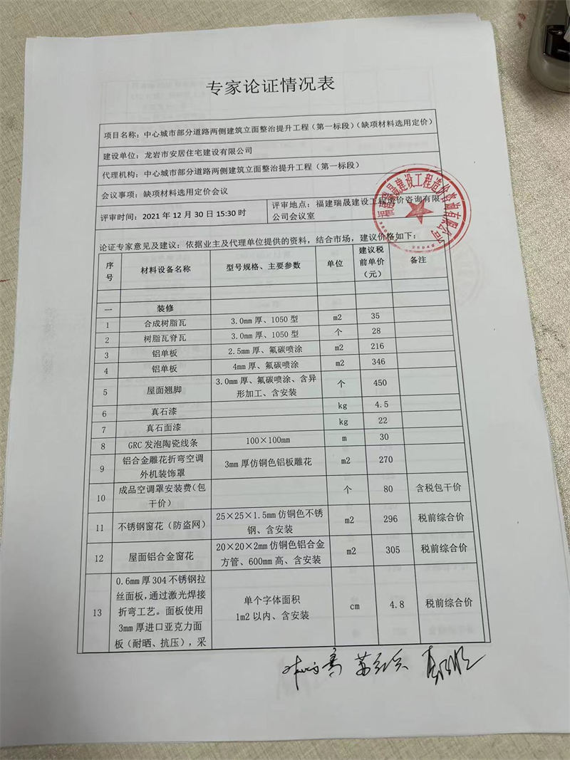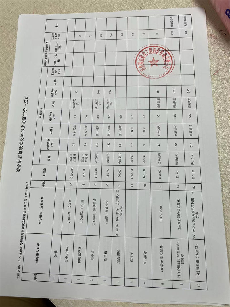 中心城市部分道路兩側(cè)建筑立面整治提升工程(第一標(biāo)段)缺項(xiàng)材料選用定價(jià)情況
