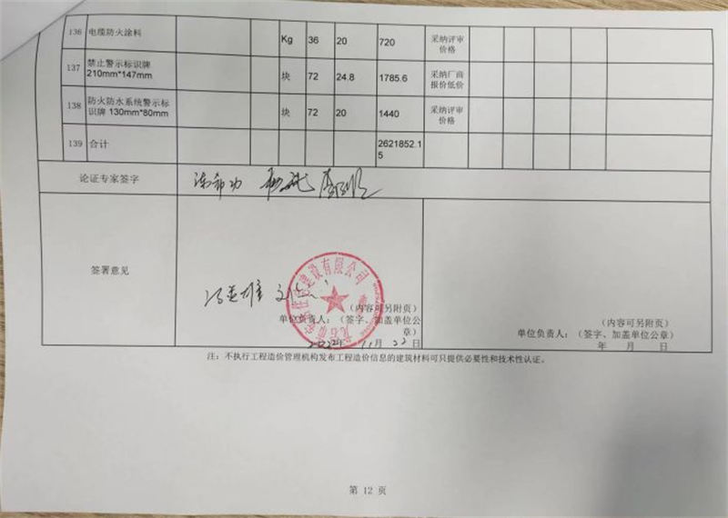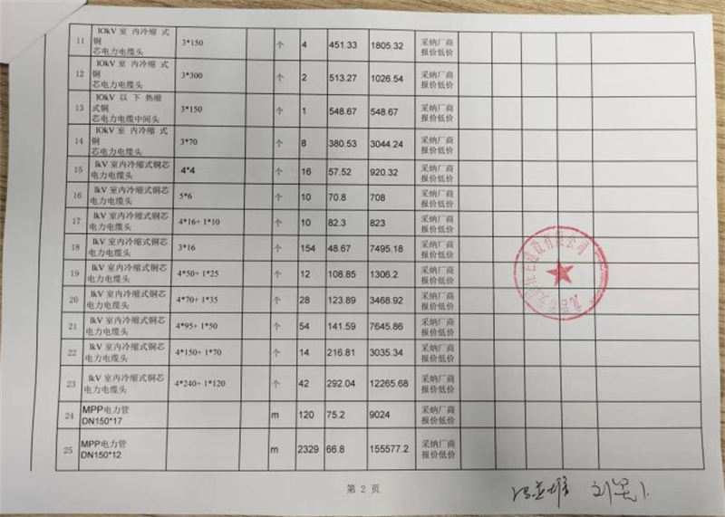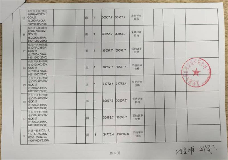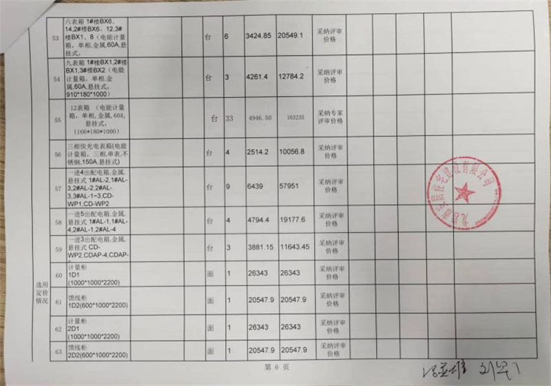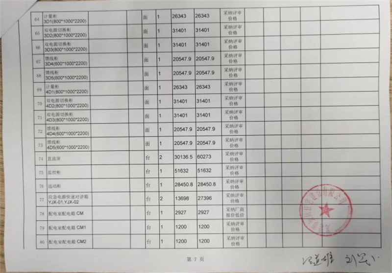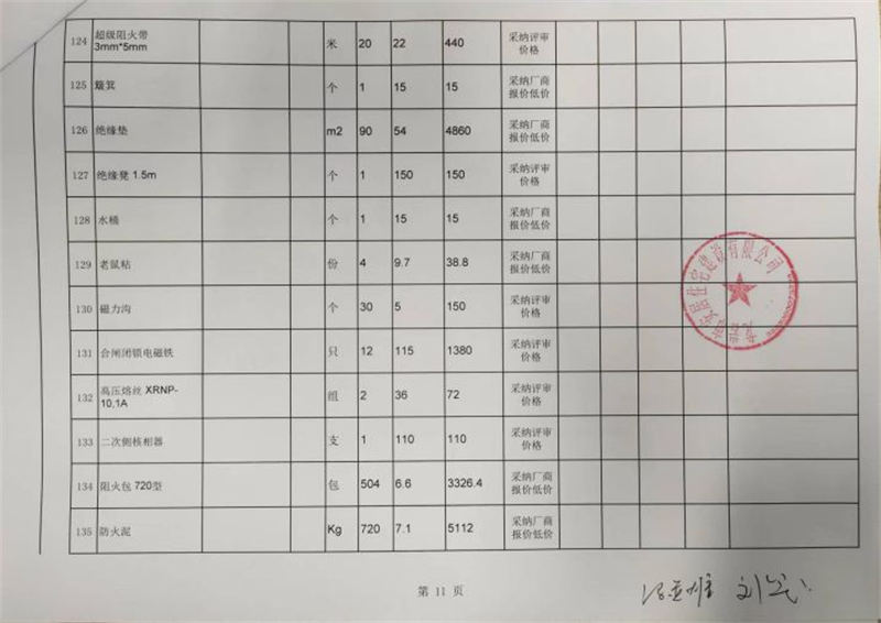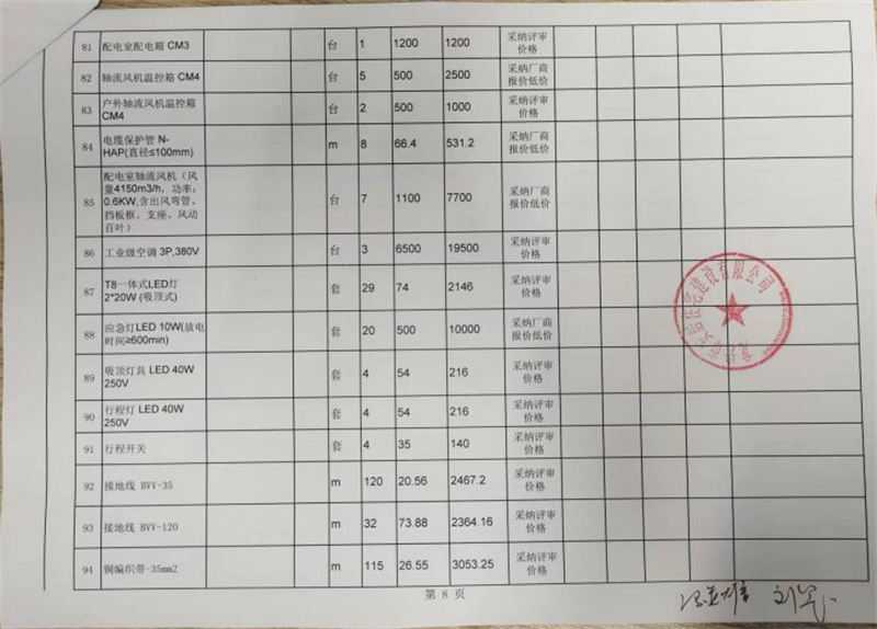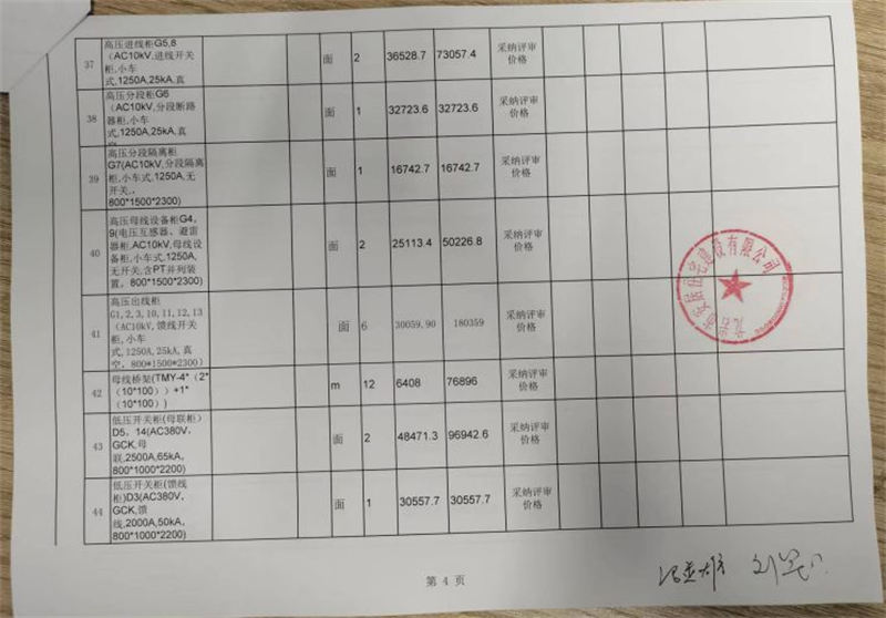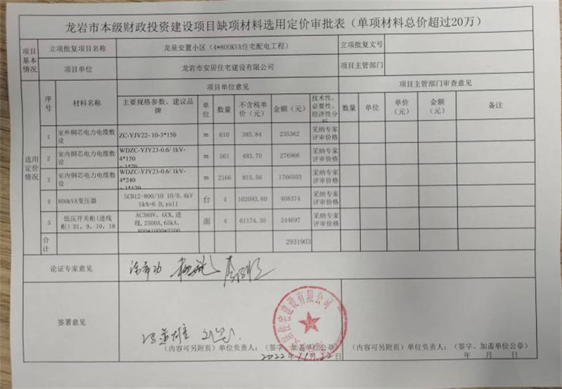 龍泉安置小區(qū)4*800KVA住宅配電工程缺項(xiàng)材料定價審批表