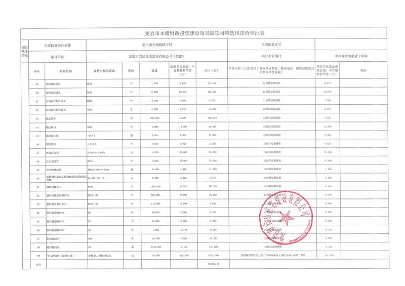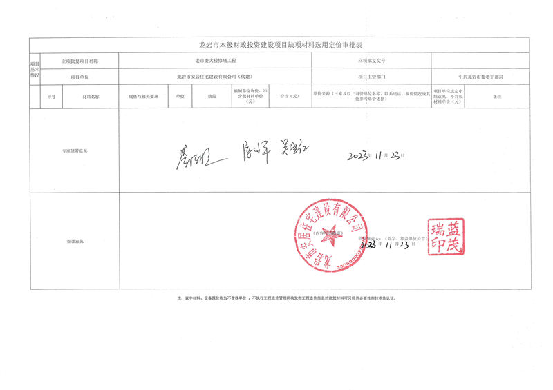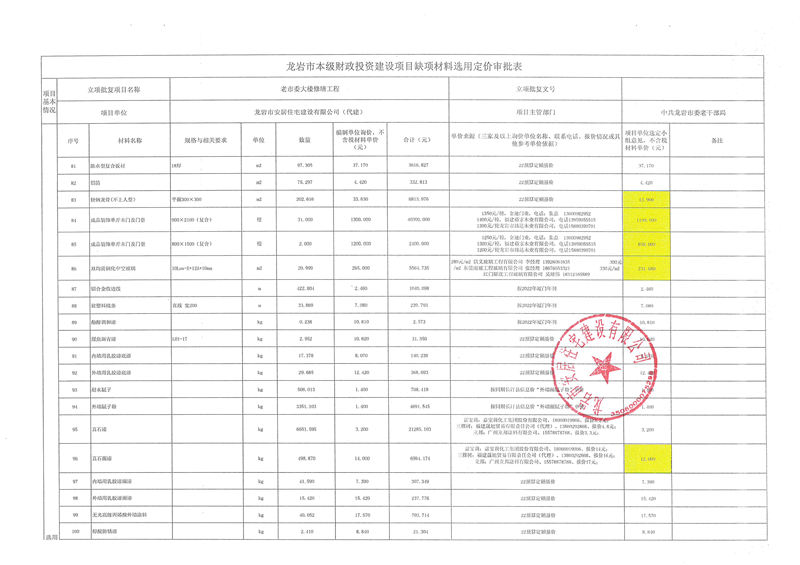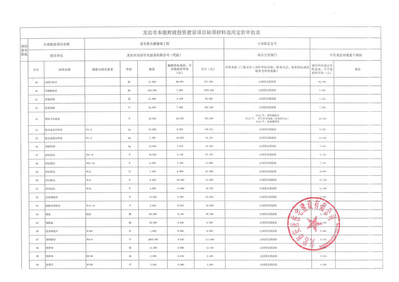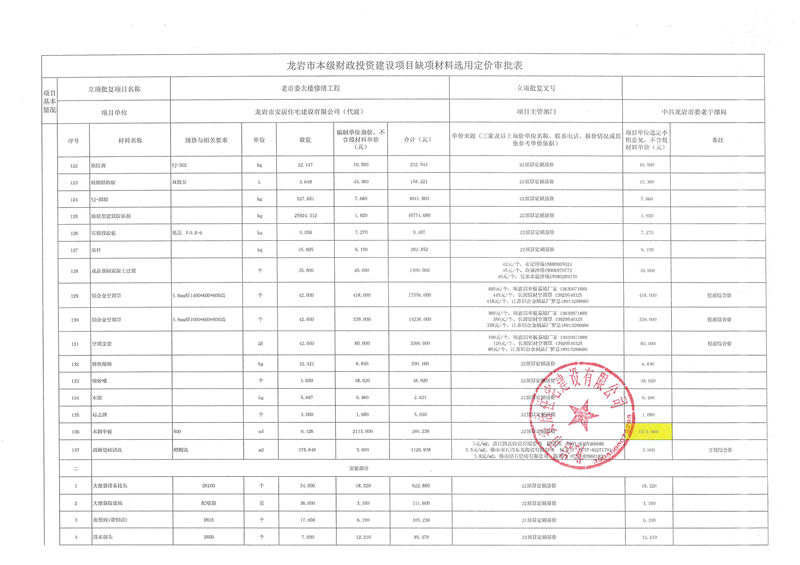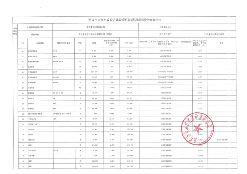 老市委大樓修繕項(xiàng)目缺項(xiàng)材料公示