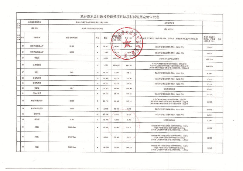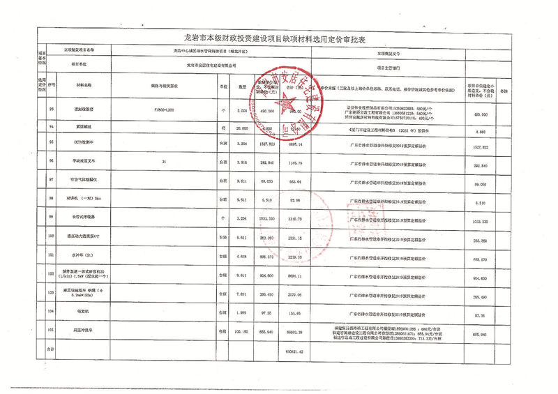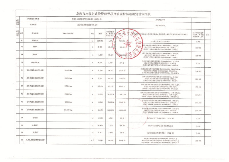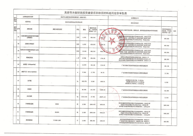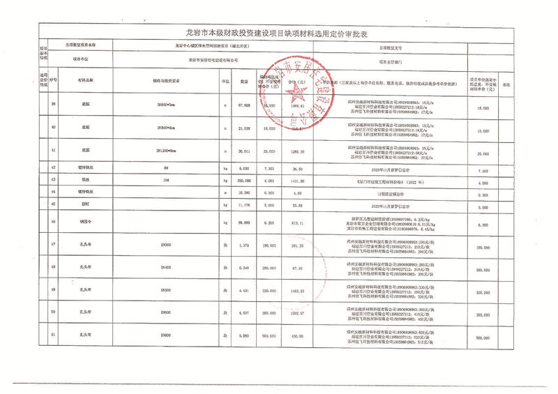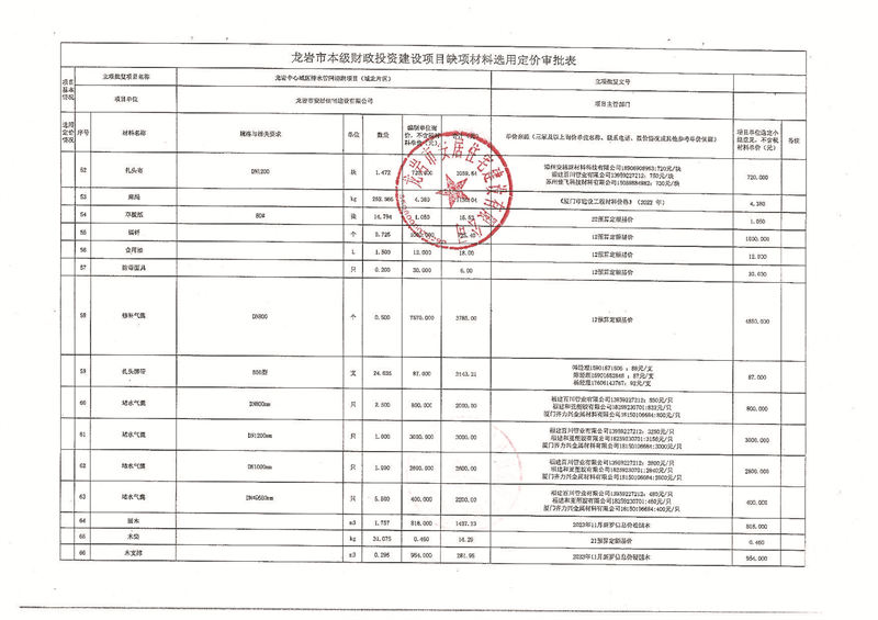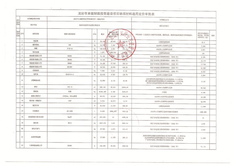 龍巖中心城區(qū)排水管網(wǎng)清淤缺項(xiàng)材料公示(城北片區(qū))