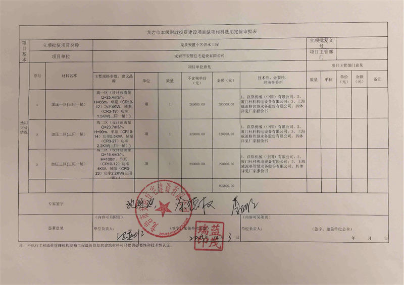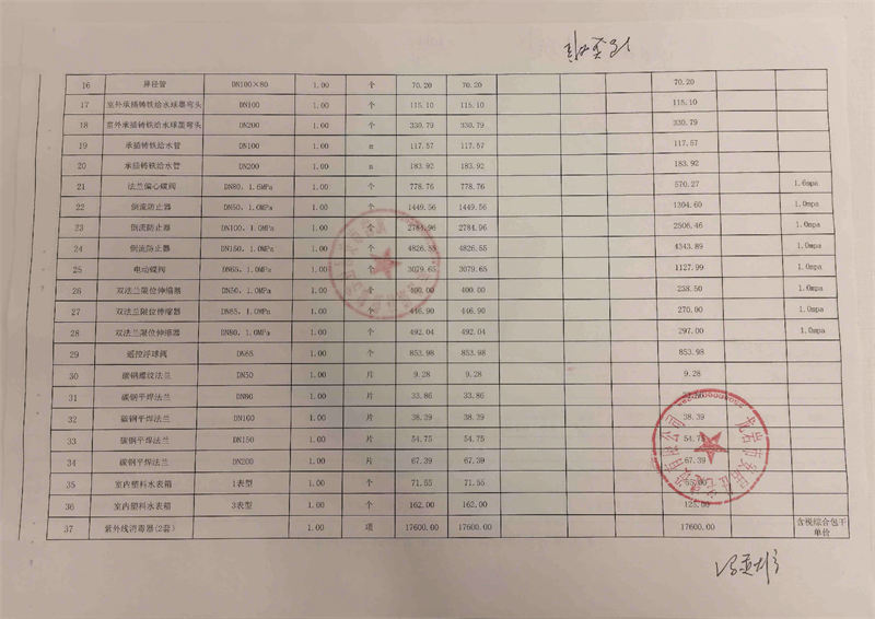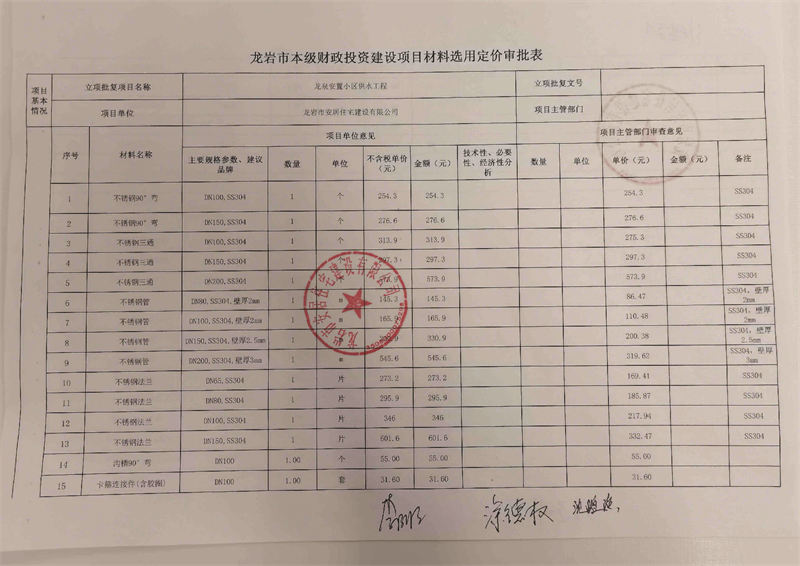 龍泉安置小區(qū)供水工程材料公示