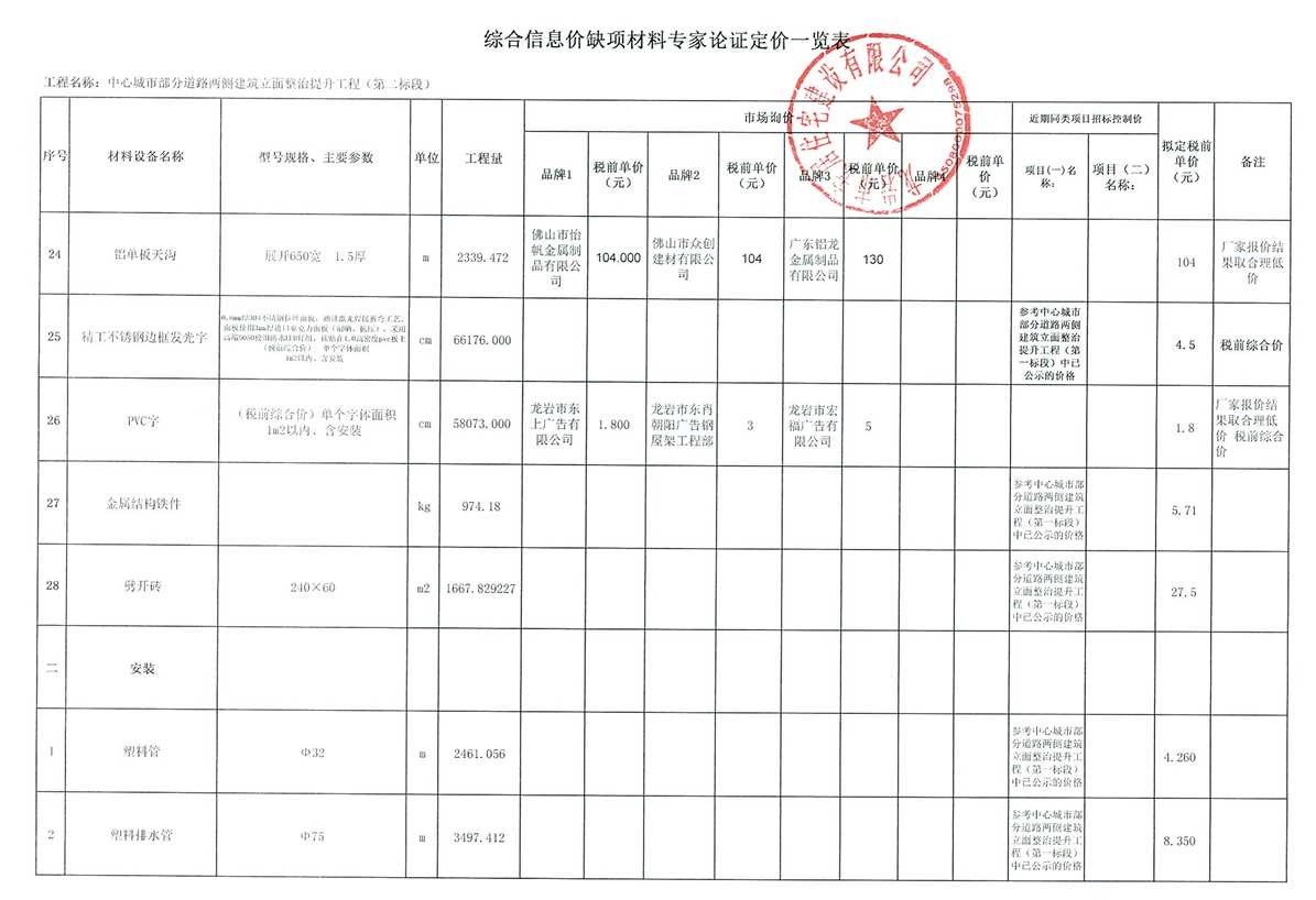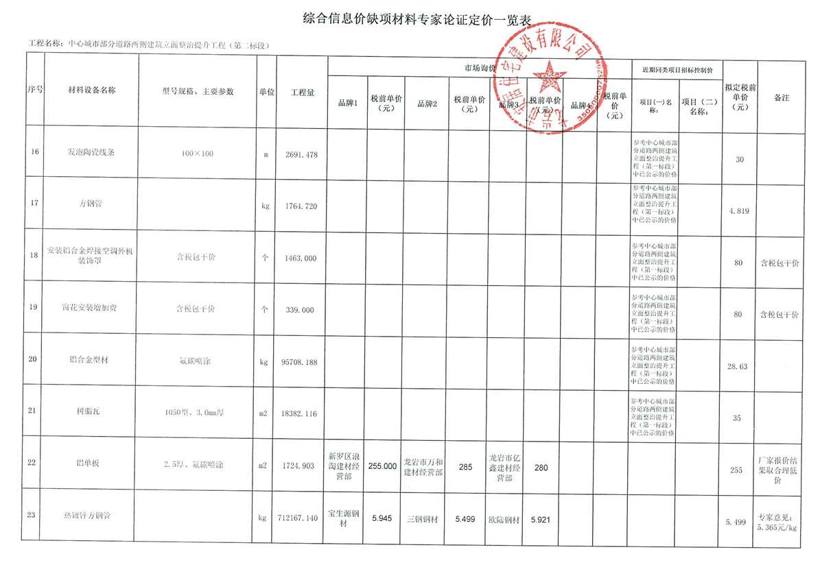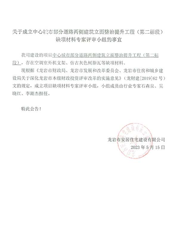 中心城市部分道路兩側(cè)建筑立面整治提升工程(第二標(biāo)段)缺項(xiàng)材料公示