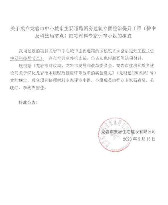 中心城市部分道路兩側建筑立面整治提升工程(僑中及科技局節(jié)點)缺項材料公示